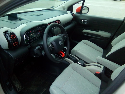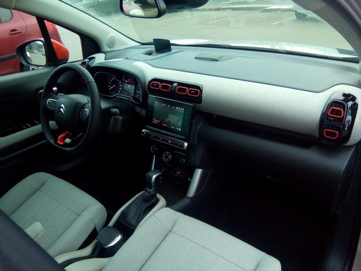 Jaunais “C3 Aircross” ir aprīkots ar modernākajām tehnoloģijām, ieskaitot 12 vadītāja palīgsistēmas, četras viedtālruņa savienojamības tehnoloģijas un bezvadu uzlādes iespēju. Jauniešiem noteikti patiks! Futūristiskais interjera dizains gan nav tik radikāls kā “C4 Cactus”, taču tas ir ieturēts vienotā avangardiskā stilā, iedvesmojoties no pagājušā gadsimta 70.gadu kubisma tradīcijām. Te ir daudz telpas, daudz gaismas un daudz sīklietu novietņu. Panorāmas stikla jumts nodrošina vieglu un gaisīgu sajūtu salonā. Priekšējie sēdekļi ir ļoti ērti, aizmugurējie spēj nodrošināt pienācīgu plašumu arī pieaugušajiem. Tie ir nolokāmi attiecībā 60/40 un pie tam vēl arī bīdāmi, lai pēc nepieciešamības nodrošinātu vairāk vietas sēdošajiem vai arī lielāku bagāžnieku, kura apjomu iespējams variēt 410-520 litru robežās. Kopējais kravas pārvadāšanas apjoms, nolokot aizmugurējos sēdekļus, kā arī priekšējo pasažiera sēdēkli, var tikt palielināts līdz iespaidīgiem 1289 litriem. Testa braucienā pārliecinājāmies, ka auto ir piemērots jaunajām ģimenēm, jo bērnu ratiņi (izjauktā veidā) viegli ietilpst 520 litru bagāžniekā.