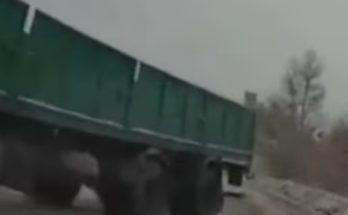 Kravas auto vadītājs iebrauc līkumā pārāk ātri un pieļauj puspiekabes ieslīdēšanu pretējā joslā.