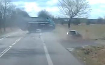 Izbraucot uz galvenā ceļa, Volkswagen Golf vadītājs uztriecas “fūrei”, kas apgāžas uz sāniem.