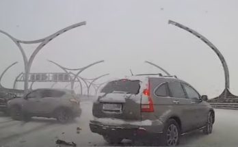 Avārijā uz tilta iesaistīti trīs transportlīdzekļi, filmētājs no sadursmes izvairās.