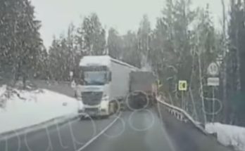 Kravas auto šoferis brauc pārāk ātri, tādēļ puspiekabe līkumā ieslīd pretējā joslā un saduras ar Kamaz.