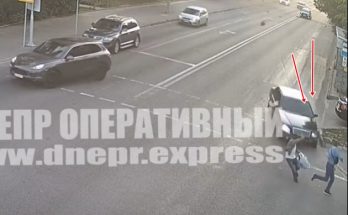 Ukrainas pilsētā Dņipro kāds autovadītājs, kurš pie stūres bija sēdies dzērumā, izraisīja nopietnu avāriju ietriecoties tajā pašā virzienā braucošā Mitsubishi, notriecot cilvēku uz gājēju pārejas un taranējot mājas sienu.