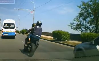 Lai ātrāk tiktu uz priekšu, motociklists līkumo starp satiksmes dalībniekiem, taču tāda taktika pie laba nenoved (visi notikumi līdz 0:20).