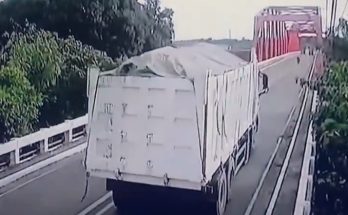 Video novērošanas kameras fiksē brīdi, kad tilta konstrukcija Filipīnās neiztur pārkrautas kravas automašīnas svaru.