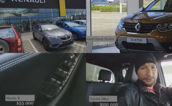 Krievu blogeris izstaigā vairāku marku jauno auto salonus un pastāsta par cenām. 30 000 dolāru par Dacia Duster, 55 000 dolāru par Mazda 6, 100 000 dolāru par Toyota Hilux.