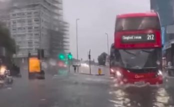 Londonā svētdienas vakarā spēcīgu lietusgāžu laikā applūdušas vairākas metrostacijas un ielas, vietumis pilnībā apturēta satiksme vai izveidojušies sastrēgumi.