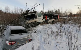 Sabojātas visas automašīnas, kas bija smagā spēkrata kravā.