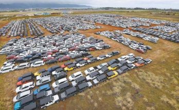 18 tūkstoši nomas auto Covid-19 ietekmē zudušā pieprasījuma dēļ gaida labākus laikus Havaju salu cukurniedru laukos.