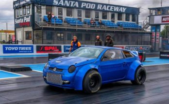 Rumāņu tūninga kompānijas Dop Motorsport pārbūvētais Volkswagen Lupo apgādāts ar diviem motoriem, kas kopā attīsta 1800 Zs – vairāk nekā Bugatti Chiron 8,0 litru W16 agregāts.