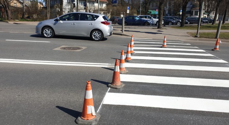 Laiks ir silts un sauss – ļoti labi apstākļi, lai atjaunotu ielu horizontālos apzīmējumus. Tieši to mēs novērojām Jūrmalā 18.04.2019.