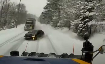 Vieglās automašīnas vadītājs apdzen līkumā, nespēj atgriezties savā joslā un saskrienas ar sniega tīrīšanas tehniku.