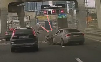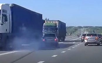 Divi auto vadītāji “sacenšas veiklībā”, līkumojot starp rindām, līdz vienam no viņiem tas beidzas bēdīgi.