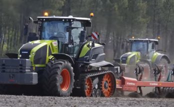 Aršana Francijas laukos ar puskāpurķēžu Claas Axion 960TT un Kverneland 12 lemešu arklu.