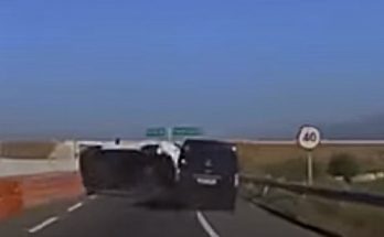 Furgona vadītājs ceļa sašaurinājumam tuvojas daudz par ātru un aizķerot priekšā braucošo mašīnu, nosūta to kūleņu kūleņos.