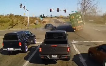 Bez bremzēm palicis kravas auto izdrāžas cauri krustojumam noslaukt visu, ko sastop savā ceļā.