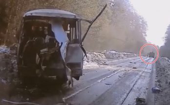 Saslīdot uz šaurā ceļa autobuss pazaudē aizmugures daļu, piedzīvojot sadursmi ar kravas auto. Laimīgā kārtā pēdējā solu rindā pasažieru nebija.