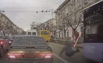 Vīrietis ir tik ļoti aizrāvies ar skatīšanos telefonā, ka nepamana satiksmes autobusu.