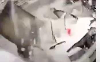 No jumta krītoša dzelzbetona plāksne nogāžas tajā vietā, kur pirms sekundes stāvēja vīrietis un pilnībā iznīcina viņam piederošo automašīnu.
