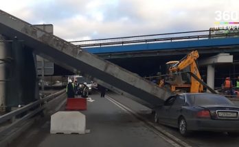 Pa priekšu braucošais kravinieks aizķer pārvada konstrukciju un vairākas tonnas smagais dzelzsbetona panelis uzgāžas vieglā auto priekšdaļai.