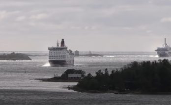 Pagājušās nedēļas nogalē Baltijas jūrā plosījās tik stipra vētra, ka pat milzīgie Viking Line prāmji nespēja pretoties spēcīgajam vējam.