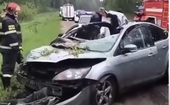 Uzmanību, nepatīkami skati! Video fiksēts jau notikušais: dzīvnieks un automašīna pagalam, vadītājs neskarts.