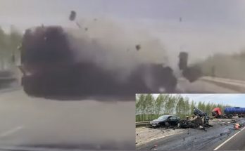 Agresīvs autobraucējs apsteidz Toyota pa labo pusi un izbrauc pretējā joslā, kur saduras ar pretimbraucošo Iveco kravinieku.