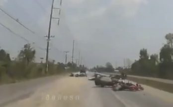 Pieci vai seši baikeri gandrīz vienlaicīgi krīt no motocikliem kādu neredzamu braukšanas apstākļu izmaiņu dēļ.