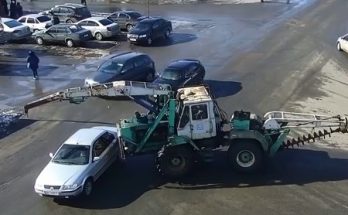 Iespējams, paļaujoties uz to, ka vieglā auto šoferis beidzot sakustēsies, traktorists uzsākt braukt un smagā tehnika uztriecas mašīnai.