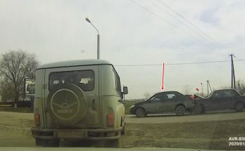 Datsun vadītājs nobremzē, taču tā arī nepaspēj veikt iecerēto kreisā pagrieziena manevru.