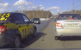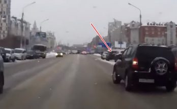 Kad abi priekšā esošie sāk bremzēt, lai pagrieztos pa kreisi, video autoram vairs nav kur palikt.