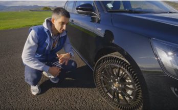 Žurnālists izbrauc ar mašīnu, kurai uzmontētas Michelin Uptis – riepas bez gaisa. Ja testi būs veiksmīgi, tirgū tās nonāks 2024.gadā.