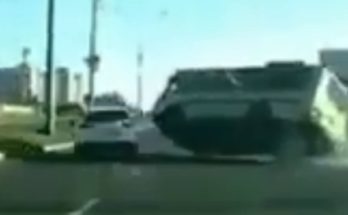 Vieglās automašīnas vadītājs veiksmīgi izvairās no autobusa, kas gandrīz uzgāžas tam virsū.