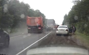 Autovadītāji nav pietiekami uzmanīgi vietā, kur satiksme jau labu brīdi apstājusies. Vispirms nepagūst nobremzēt kāds vieglās mašīnas šoferis, tad kravinieks, kas sastumj vairākus spēkratus kaudzē (no 0:30).