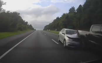 Pa kreiso joslu lēnāk braucošajam pikapam uztriecas Volkswagen, kas brauc ar ievērojami lielāku ātrumu un šķērsli savā priekšā, šķiet nemaz nemana.
