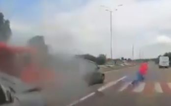 Četri auto cieš, taču gājējs paliek neskarts (+ VIDEO)