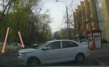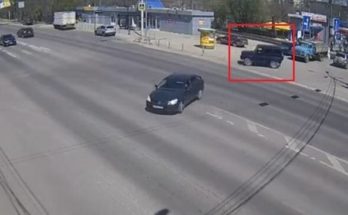 Redzēdams, ka satiksme apstājas, video autors nobremzē, lai palaistu mašīnu, kas izbrauc no sānielas, taču tajā brīdī viņu pašu apdzen cits autovadītājs.