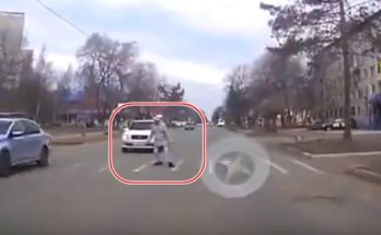 Šķērsojot brauktuvi pa gājēju pāreju, vīrietis aiziet līdz pusei un negaidot pagriežas atpakaļ.