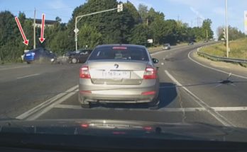Škoda vadītājs negaida rindā – viņš apbrauc noteikumu ievērotājus pa labo pusi un veic kreiso pagriezienu “no aizsega”