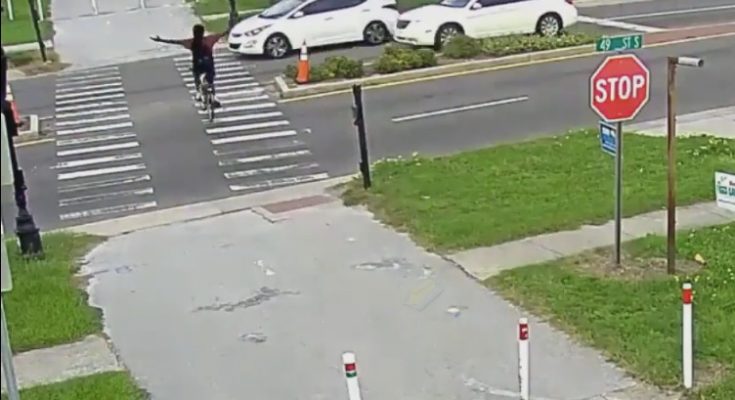 Kā var secināt no video apraksta, velobraucējs tiek notriekts, vainīgais autovadītājs to novelk no ceļa un aizbrauc, tādēļ Sanktpēterburgas (ASV) policija uzsākusi viņa meklēšanu.