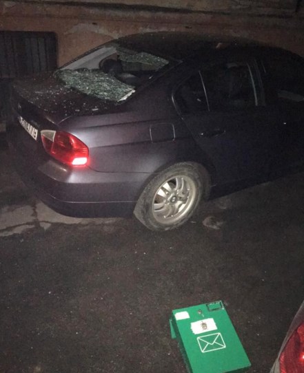 Kaimiņa automašīnai izsists aizmugurējais stikls, kā arī apskādēta transportlīdzekļa virsma, liecina sociālajā tīklā “facebook.com” publicētās fotogrāfijas. Deputāts skaidroja, ka sagriezts arī salons un postījumi veikti kāpņutelpā mājai, kurā Kaimiņam ir dzīvoklis – norauts ziņojuma dēlis un pastkaste.
