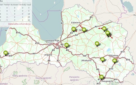 LAU tehnikas darbam var sekot līdzi kartē “Braukšanas apstākļi”. Kartē ir redzams, kuros konkrēti posmos tiek veikti ziemas uzturēšanas darbi, kā arī tas, cik tehnikas vienības noteiktajā dienā atrodas uz ceļiem.