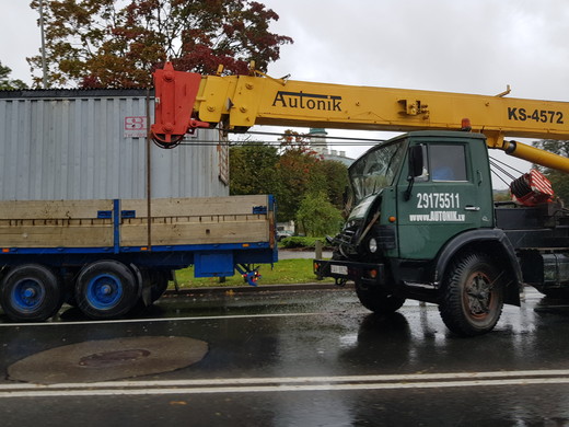 Šopēcpusdien Jūrmalā, pretī Majoru stacijai notikusi divu transportlīdzekļu sadursme – kompānijas “Autonik” autoceltnis ietriecies tās pašas kompānijas kravas automašīnas puspiekabē.