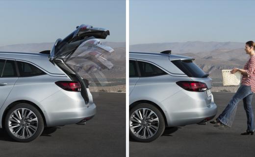 Vizuāli “Opel Astra Sports Tourer” līdz pat virsbūves vidējiem statņiem dublē “Astra” hečbeku, kam seko universāliem raksturīgs turpinājums ar kravas telpu un “Sports Tourer” gadījumā masīviem aizmugures balstiem, garu pārkari un trešo lodziņu. Izceļas arī glītie LED lukturi un hroma dekors, kas grezno logu līnijas augšējo malu un stiepjas līdz pat bagāžnieka vāka stiklotās daļas apakšmalai.