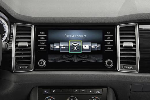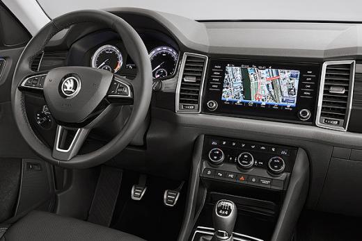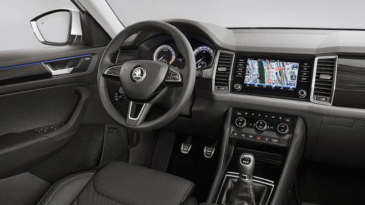 Kodiaq aprīkojumā būs multimediju sistēma ar skārienjutīgu vadību, Google navigāciju, atsevišķa klimatkontrole aizmugures pasažieriem, bagāžnieka vāks ar elektropievadu un bezkontakta atvēršanas funkciju, Head-up displejs, kā pirmajam no Škoda modeļiem. Būs arī durvīs noglabāti lietussargi un speciāls „miega komplekts” aizmugures pasažieriem.