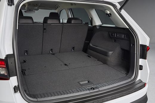 Tagad zinām, ka septiņvietīgā krosovera trešo sēdekļu rindu var regulēt garumā, bet nolaižot atzveltnes iegūstam bagāžas novietni ar līdzenu grīdu. Piecvietīgā versijā Kodiaq bagāžnieka apjoms ir 720 litri, nolaižot otrās sēdekļu rindas atzveltnes – 2065 litri.