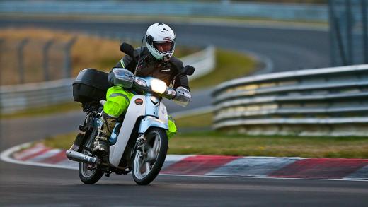 Dienvidkorejas iedzīvotājs Čžo Jon Li nobraucis 18 000 km no savas dzimtenes līdz Nirburgringai ar motorolleru viena vienīga iemesla dēļ – lai izbrauktu pa leģendāras trases apli.