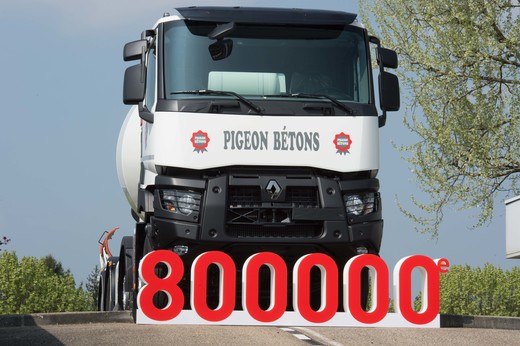 Ceturtdien, 2017. gada 6. aprīlī, Renault Trucks prezidents Bruno Blins pasniedza Groupe Pigeon prezidentam Tjerī Pižonam atslēgas no astoņsimttūkstošās Renault Trucks Burganbresas rūpnīcā izgatavotās kravas automašīnas.