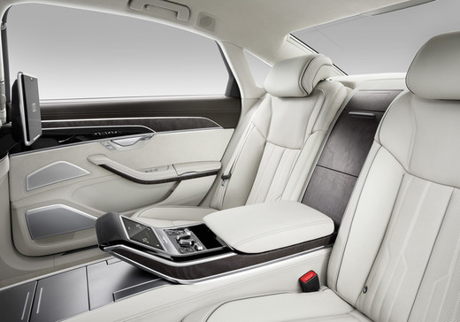 Tagad A8 komplektēts ar matricu lāzera starmešiem, bet priekšējā panelī iebūvēta jauna centrālā konsole ar diviem ekrāniem. Augšpusē novietots skārienjutīgs 10,1 collu ekrāns, bet apakšā – 8,6 collu ekrāns, ko izmanto, lai vadītu klimatkontroles sistēmu, pārvaldītu navigāciju utt.