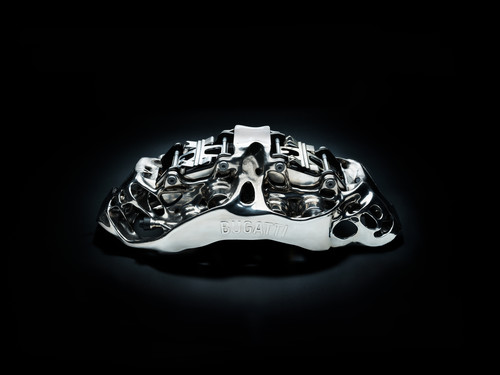 Ražotājs apgalvo, ka “Bugatti” bremžu mehānismi ir pasaulē lielākā funkcionējošā detaļa no titāna, kas izgatavota ar 3-D printeri.