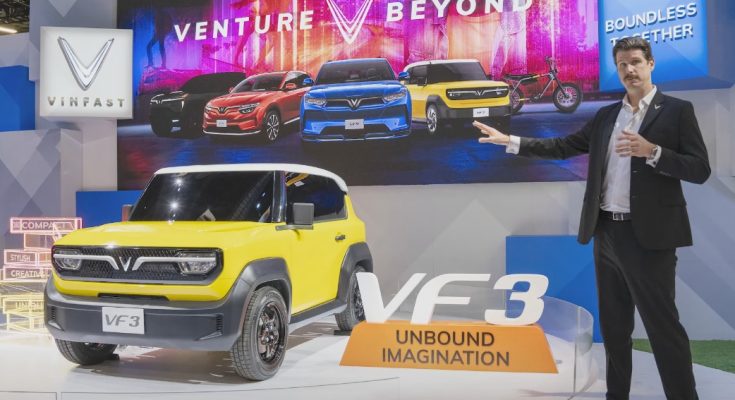 Vjetnamas VinFast CES 2024 izstādē Lasvegasā izrāda jaunu elektriskās piedziņas modeli VF3.